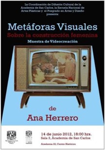 Metáforas visuales sobre la construcción femenina es el resultado de este proyecto realizado durante la beca donde se muestra una serie de cinco videos que recopilan imágenes procedentes de la televisión ( televisa, tvAzteca) novelas y publicidad mexicana para analizar como es representado el estereotipo femenino mediáticamente.