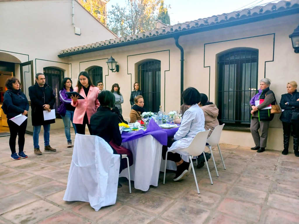 La acción artística consiste en representar una “comida simbólica” con las mujeres que participan en el curso de promotoras comunitarias.